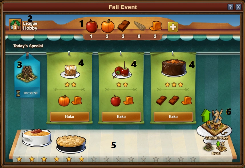 Get ingredients from quests, Daily Challenges and Incidents. Use them for baking, fill the whole table and get awesome rewards!