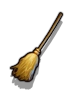 The Broomstick clears a column of cobweb tiles, provided there is at least one empty tile in that column. It only clears the tiles which are not blocked by a bookshelf, and are in line with the empty tile. If there is a bookshelf tile in the way, it will be blocked from reaching any tiles below or above it. The advantage of this is is that a large number of tiles can be cleared in one go, while the disadvantage is that if a bookshelf tile blocks its path, it cannot work beyond it.