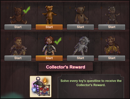 When every single one of the eight different toy quest lines is completed, a special Collectors Reward may be collected, which consists of