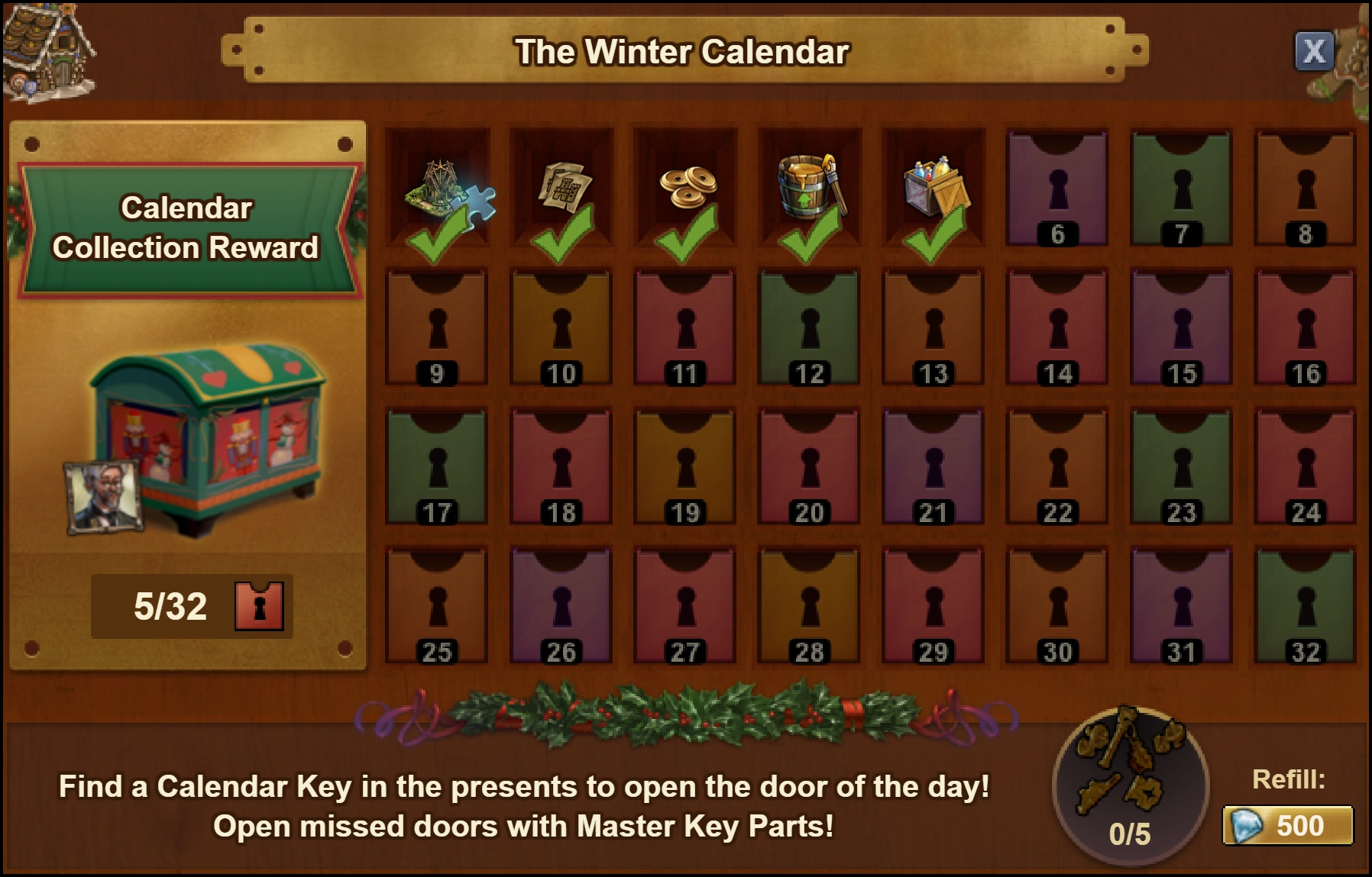 Open ALL 32 Boxes to receive the Calendar Collection Reward in your Inventory. This contains:-