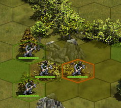 A group of Berserkers in forests and bushes maintaining a higher defense.