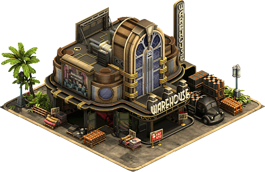 The Construction Warehouse is a goods building of the Modern Era that produces Luxury Materials. The production requires Porcelain from the Colonial Age. If the player controls the good deposit of Marble Rock (which eventually can be found in the provinces of the Bronze Age, the Modern Era and the Arctic Future) the production is multiplied by five.
