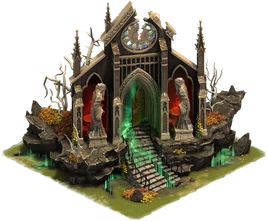 When the Dark Doorway is motivated, its production is not only doubled, but it also produces three Forge Points. The production is also boosted by enthusiastic population and by boosts of certain Great Buildings. The building's coin production can be plundered if it isn't motivated.