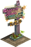 The Drive-In Sign is one of the premium decoration of the Modern Era. When the Drive-In Sign is polished, its output of happiness is doubled for 12 hours. Decoration don't need a road connection.
