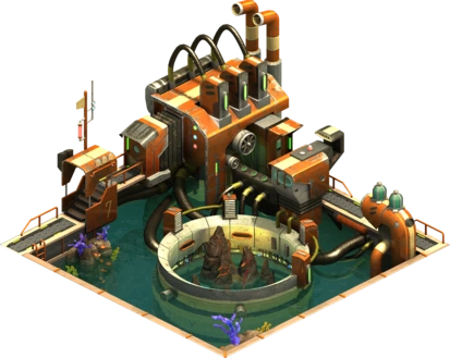 The Geothermal Power Plant is one of eight production buildings of the Oceanic Future. It is also a premium production buildings of the Oceanic Future. When the Geothermal Power Plant is motivated, its production is doubled. The production is also affected by the town's happiness and by boosts of certain great buildings. The Geothermal Power Plant can be plundered if it isn't motivated.