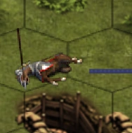 In Forge of Empires, when the Heavy Cavalry dies, the Cavalryman's spear will hit the Horse's head as they fall backwards, whilst the Cavalryman will disappear