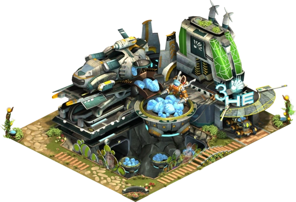The Helium-3 Extraction Facility is one of four production buildings of the Future Era. When the Helium-3 Extraction Facility is motivated, its production is doubled. The production is also affected by the town's happiness and by boosts of certain great buildings. The Helium-3 Extraction Facility can be plundered if it isn't motivated.