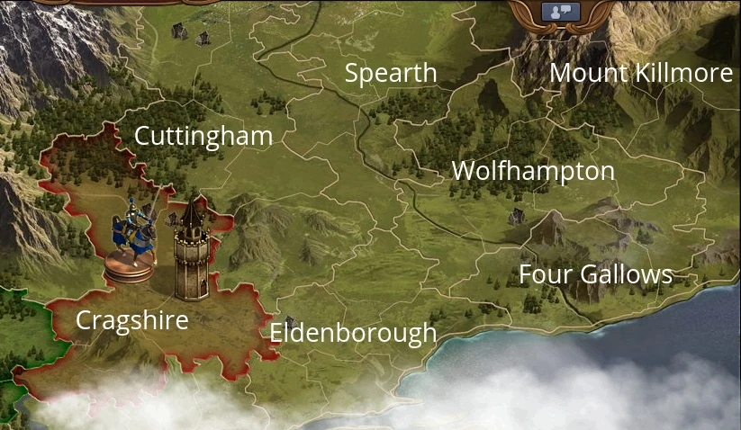 This era includes seven provinces to conquer: Cragshire, Eldenborough, Cuttingham, Spearth, Wolvhampton, Four Gallows, and Mount Killmore.