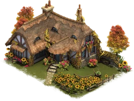 The September Cottage produces coins in 24 hours, and when it is motivated, its coins production is doubled and all special productions are enabled. The production is also affected by the town's happiness and by boosts of certain Great Buildings and it gains additional boosts after being upgraded. The building can be plundered if it isn't motivated.
