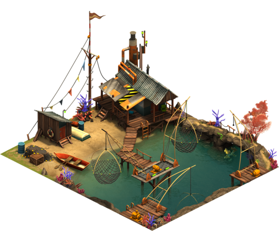 The Shellfish Farm is one of eight production buildings of the Oceanic Future. When the Shellfish Farm is motivated, its production is doubled. The production is also affected by the town's happiness and by boosts of certain great buildings. The Shellfish Farm can be plundered if it isn't motivated.