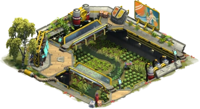 The Space Food Farm is the only non-premium production building of the Space Age Asteroid Belt. When it is motivated, its production is doubled. The production is also affected by the town's happiness and by boosts of certain great buildings. It can be plundered if it isn't motivated.