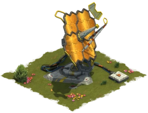 The Universe Data Telescope is the premium production building of the Space Age Asteroid Belt. When it is motivated, its production is doubled. The production is also affected by the town's happiness and by boosts of certain great buildings. It can be plundered if it isn't motivated.